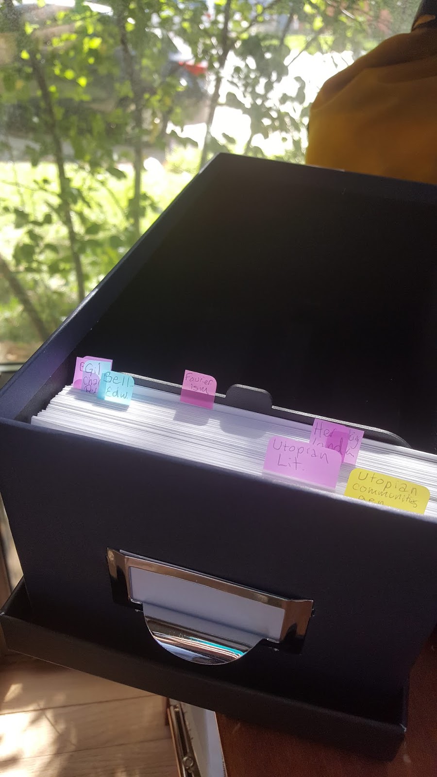 Okay, okay. I should use the notecard system. But of course I then spent half a day trying to find an explicitly digital-index-card system (Scrivener's not counting bc I need a bazillion cards) because, trees! Hand cramping! Supply costs! Travel! Etc!